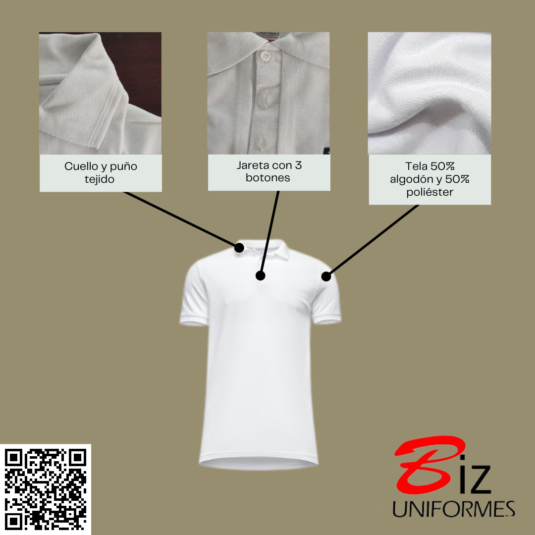 Playera tipo polo con cuello y puño tejido, con jareta y 3 botones, confeccionado en 50% algodón y 50% poliéster.
